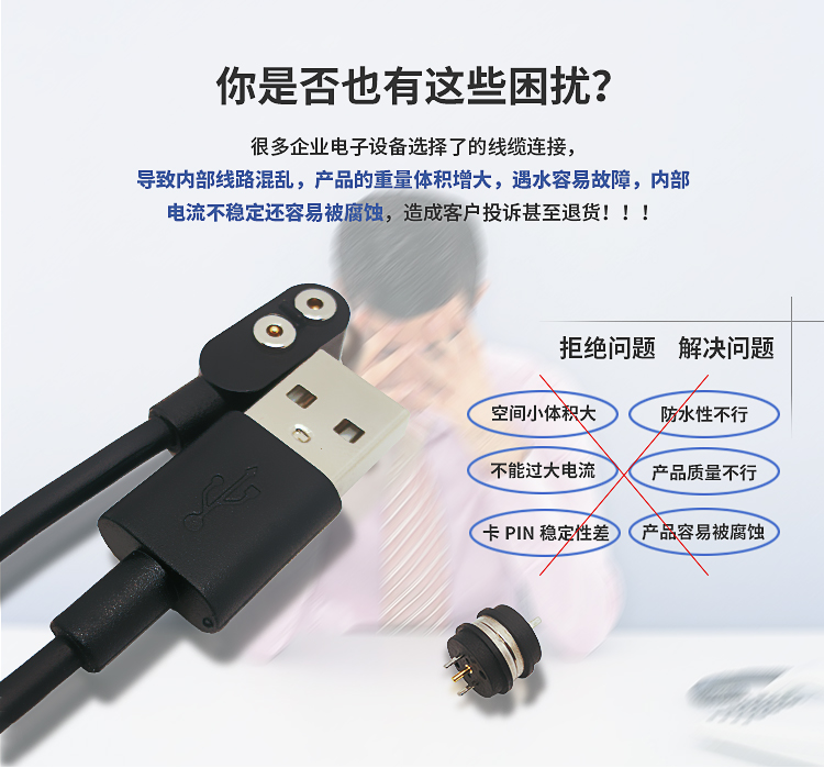 pogopin母座连接器当下通常都是用在电子产品上,它与公座不同,其一般是一个小铜柱,整个母座的结构十分简单,它是以接触式的方法连接,因此它在电子产品只要露出一点接触面,用以与公座接触便可以,这种设计更利于开发电子产品的防水功能,因此使用弹簧针的电子产品,在防水性上通常都不低,如市面上的智能手环,大部分都有着ipx7级或8级的防水。