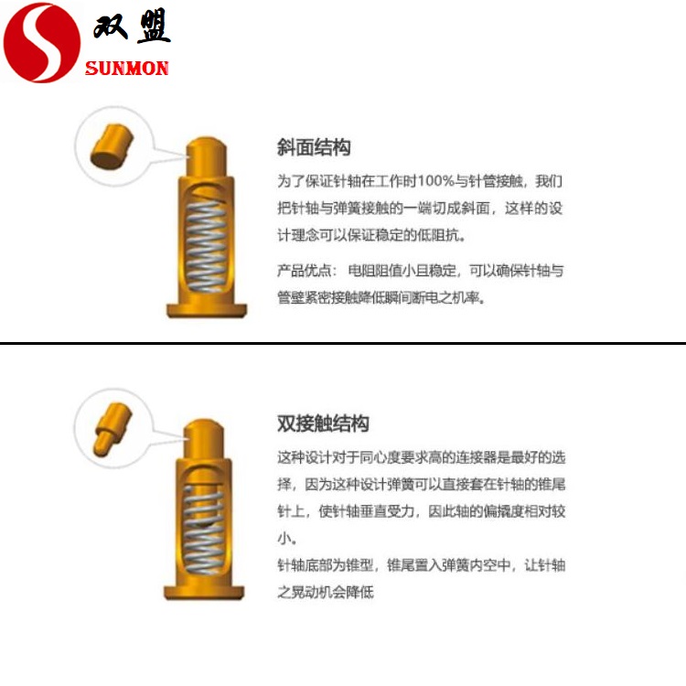 pogopin弹簧针生产厂家,多项结构实用新型专利,10余年连接器行业经验,设计+生产一站式供应链 。工厂面积12000平米,无尘净化车间,3000K/月产能。免费提供产前风险评估,降低客户风险系数,3.0镜面车削,发丝工艺,按压顺畅、无干涩异响、不卡pin、不掉pin,产品适应各种恶劣环境,工业耐腐蚀等级,11道QC严检工序,每一处细节都是标准,交货准时,[东莞双盟]从业10年准时交货每一单。