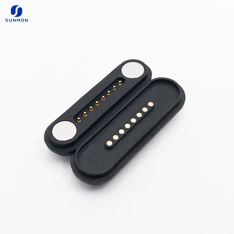 磁吸连接器也可称为pogopin磁铁连接器、磁铁接头、磁吸充电头、磁性连接器、{pogopin磁吸式接头}、磁吸式连接器等,内部是由pogopin来做充电使用的,同时可以设计信号与充电使用,广泛应用在蓝牙耳机、智能手表、车载导般行车仪等等